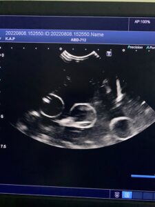 もちろん妊娠診断以外にも、お腹の中に何か腫瘍ができていないか?膀胱結石はないか?などなど、一般的な診察でもよく使われる検査です。