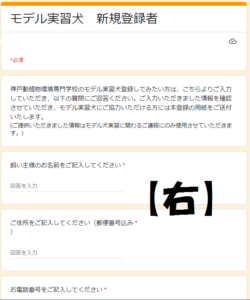 飼い主さまのご住所や、ワンちゃんの情報をご入力いただき、学校から「登録用紙」を郵送させて頂きます。