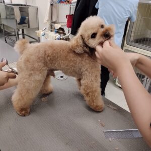 トレーニング実習犬としても来ていただいているわんちゃんですが、今日はトリミングで来校。