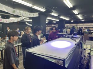 本日私たちの学校の地下にある水族館「Aqua text」にて1、2年生合同で授業を行いました!!