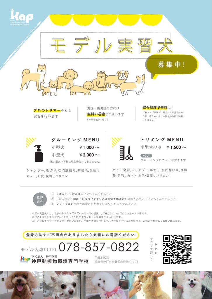 年々ありがたいことに学生数がどんどん増えてきてまして、伴ってモデル犬の数もどんどんご登録/ご利用頂きたい所存でございます。