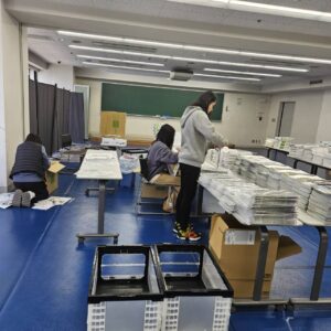 今日は、先生たちは来年度に向けてパンフレット発送準備や教室に新しい机の搬入を行いました‼