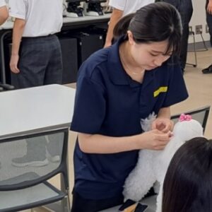 写真はトリマー、ドッグトレーナー、動物看護師 の体験授業の一コマ❣