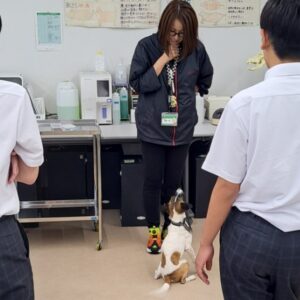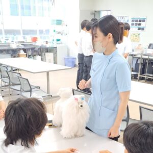 写真はトリマー、ドッグトレーナー、動物看護師 の体験授業の一コマ❣