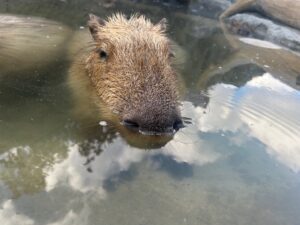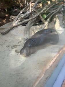 温泉に浸かりたい気持ちを抑えつつ回っていると気持ちよさそうに寝ているコビトカバがいました🦛