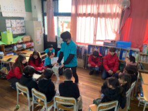先日、ワイルドアニマルコースの学生と小学校へ訪問し 小学2年生を対象に動物を知ってもらうため