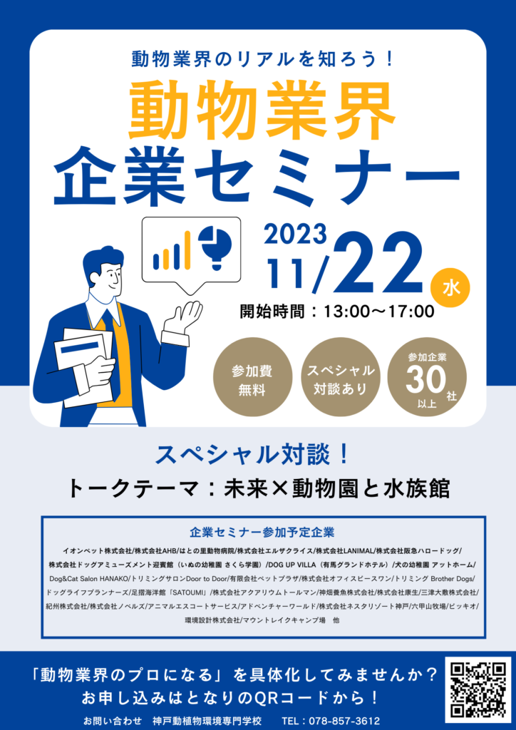 このたび、大学生・大学院生の皆様へ、本学が開催する『動物業界企業セミナー』のご案内をしたく、ポスターを掲載させていただきます。