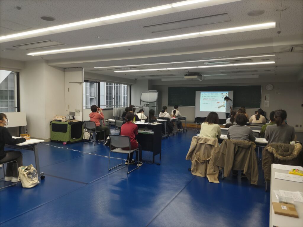 当日は20名強、動物病院関係者の方やトレーナーさんなどの参加をいただき、学生らがプロフェッショナルの方々と交流を持つ良い機会になったなと感じています。